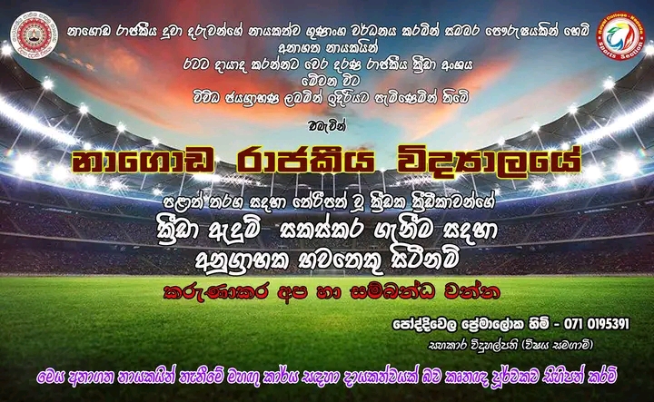 ක්‍රීඩා ඇදුම් සකස්කර ගැනීම සදහා අනුග්‍රාහක භවතෙකු අවශ්‍යයි.