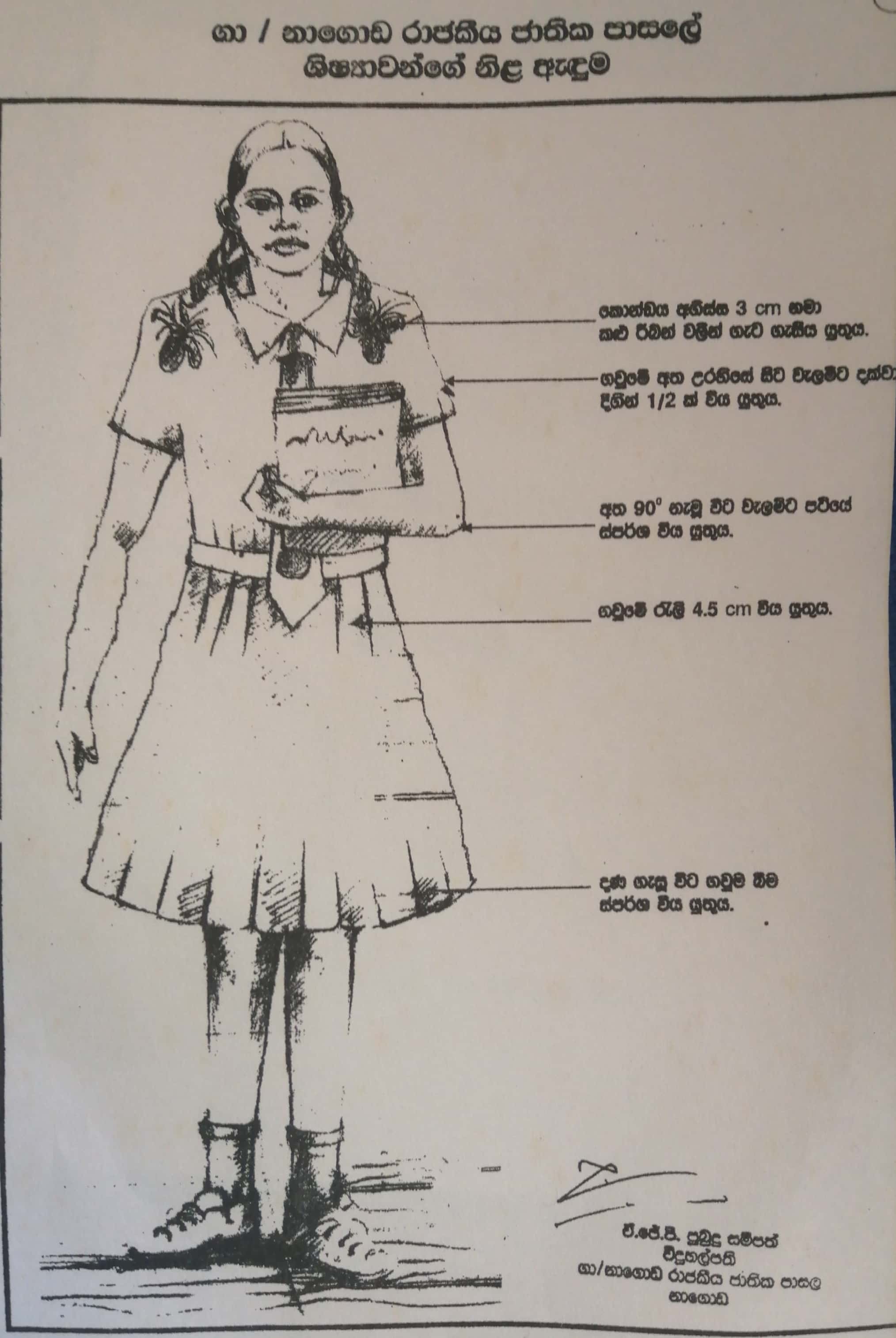 - පාසල් ලාංඡනය කමිසයේ වම් පස සාක්කුවේ කෙලවර පැලදිය යුතුය.